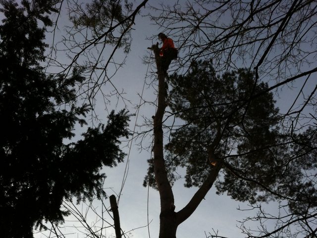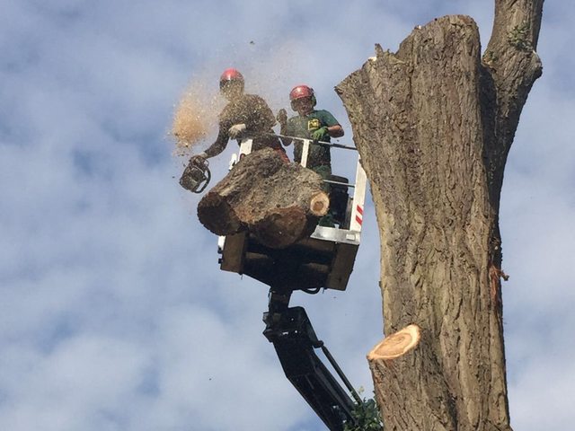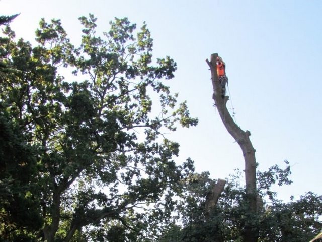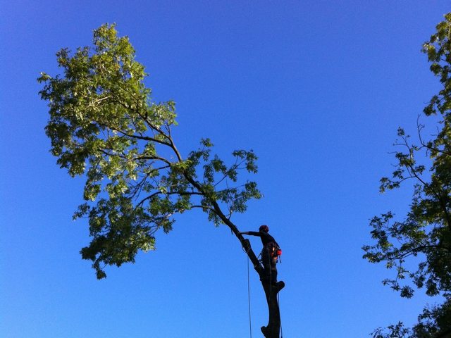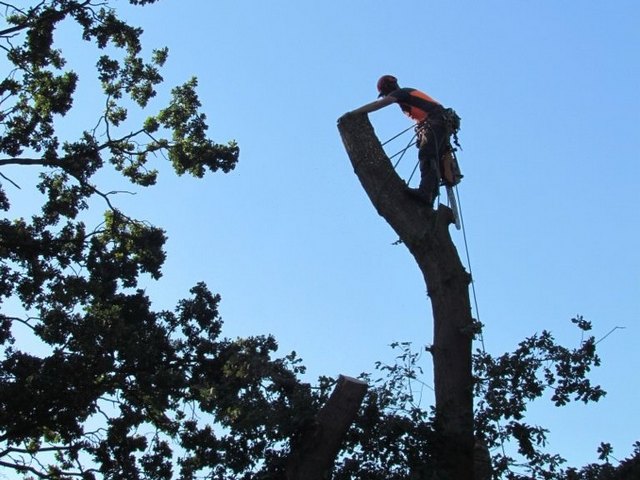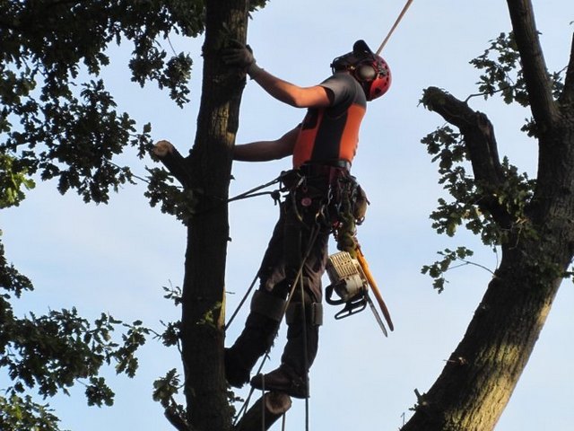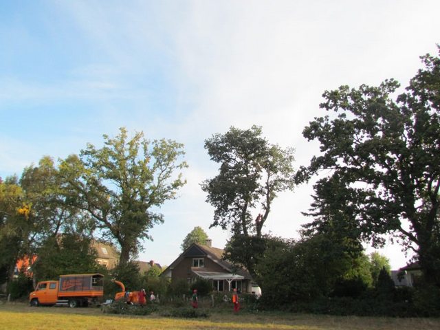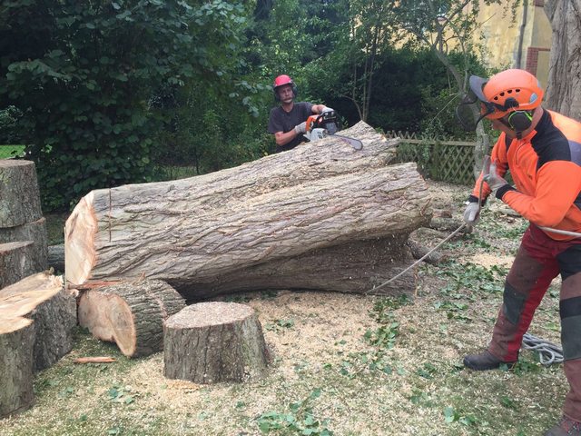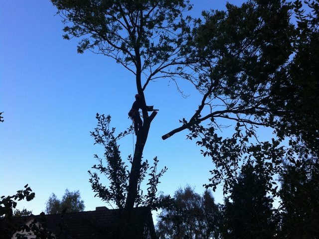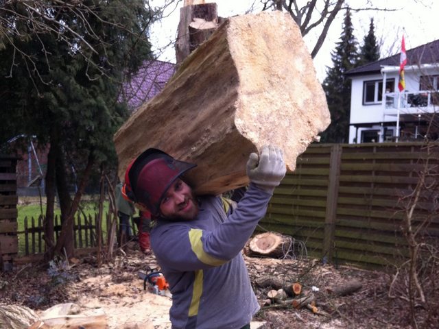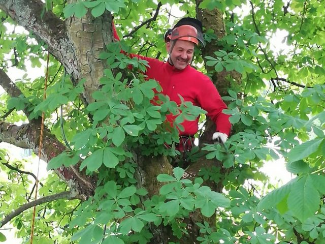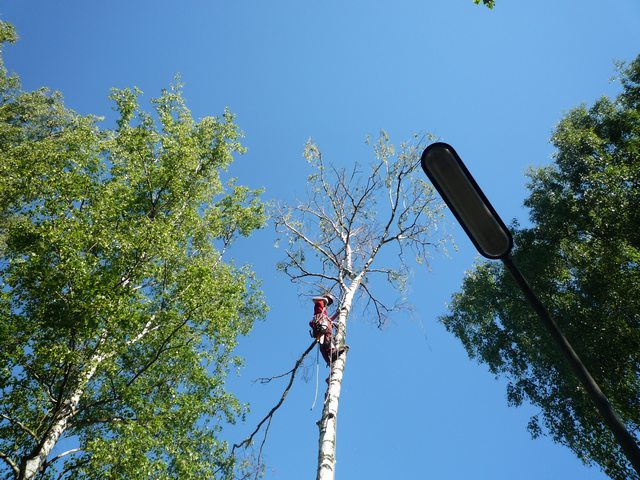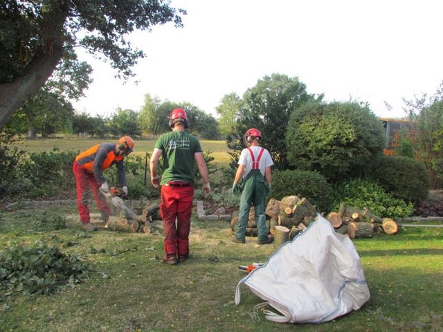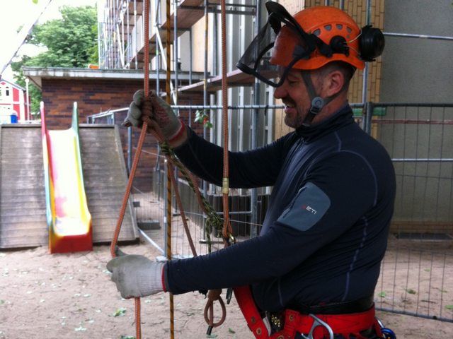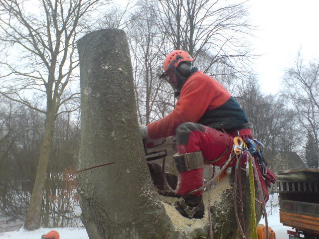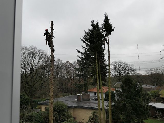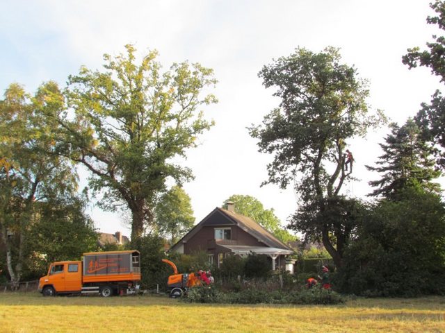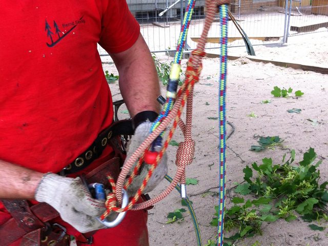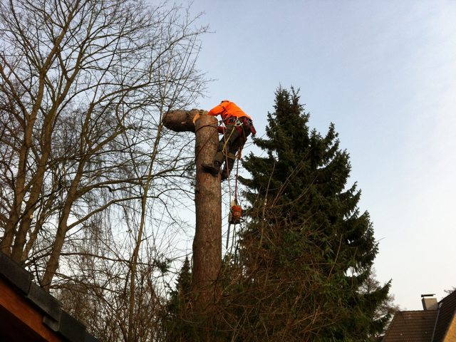 Soll ein Baum gefällt werden, wird er mit modernster Kletter- und Abseiltechnik stückweise abgetragen, um Unterpflanzungen, Zäune und Gebäude nicht zu gefährden.