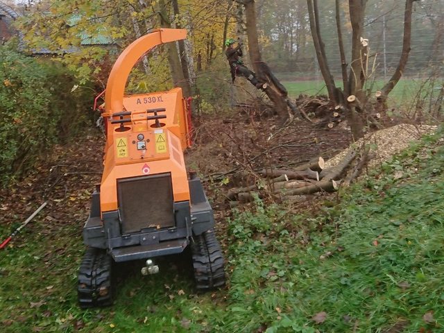 Die anfallenden Zweige und Äste werden vor Ort geschreddert.